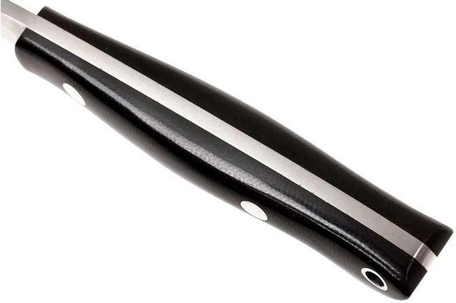 The Bark River Mini Kalahari is a stunning hunting knife, designed for small to average-sized game. This knife is the small version of the larger Kalahari Hunter. The handle is ergonomically shaped, so it is perfect for long-term use. The blade has a substantial belly, which is ideal for skinning as it means you can’t unintentionally puncture anything. The spine of the tip has afalse edge, or swedge. The blade shape might therefore remind you of a classic clip point. The Mini Kalahari is a hunting knife that will be right at home in any hunting ground.