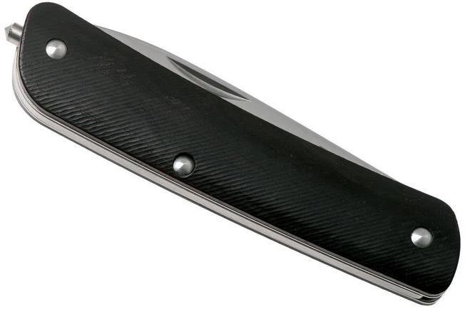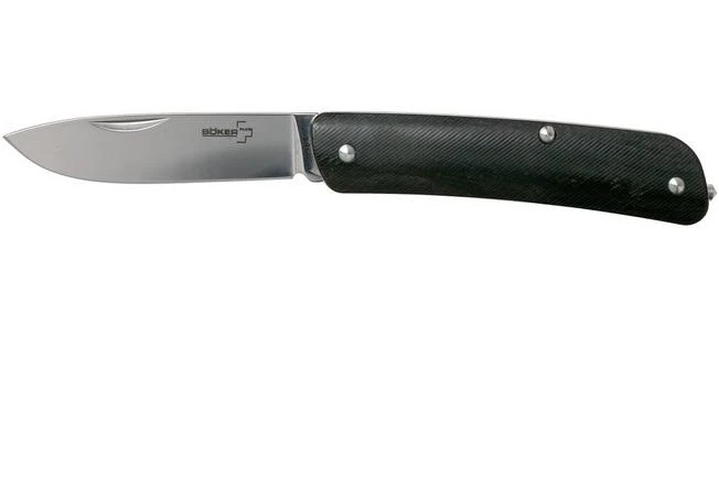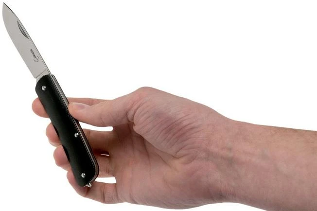 The pocket knives from the Böker Plus Tech-Tool collection might all remind you of the famous Swiss pocket knives. Instead of a traditional red plastic scale these new knives are enhanced with G10 scales. The blade is made from Sandvik 12c27-steel, a stainless type of steel that was specifically developed as a knife steel. The blade is enhanced with a remarkable hollow grind. As such it is thin above the edge, which improves the cutting properties. It doesn’t contain a real lock, but a slipjoint firmly keeps the blade in place when opened. The back of the handle is enhanced with a solid glass breaker.