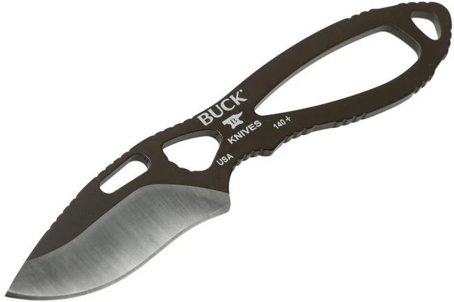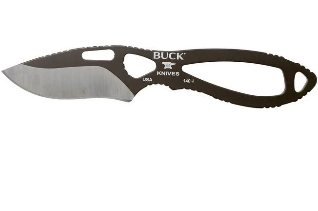 The Buck 140 Paklite Skinner is a light-weight fixed knife designed for hunting purposes. As the name already suggests this knife was designed for ‘skinning’ purposes. Carefully gutting game. For it, it is key to remove the fur without damaging the intestines. That is why the edge of a skinner knife is always enhanced with a substantial ‘belly’. With it you can precisely, without having to worry about damaging the intestines, remove the fur. Buck went with an ultra-light design. A steel frame with a sharp cutting edge, that’s it. No scales or other unnecessary luxury: this is it.