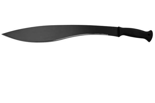 This Cold Steel Kukri Machete is a cheap machete, shaped in a traditional Kukri pattern. This is a machete that was originally used by the Gurkhas in Nepal. On original, fantastic finished Kukri is very expensive. That’s why Cold Steel introduced this Kukri Machete for people looking for a a good tool. A real powerhouse. Not very sharp. Makes sense because it was made for chopping purposes and not really meant to be sharpened, but if you wish you can sharpen it yourself with a little patience. This kukri is great for pruning blackberry bushes and other crops.