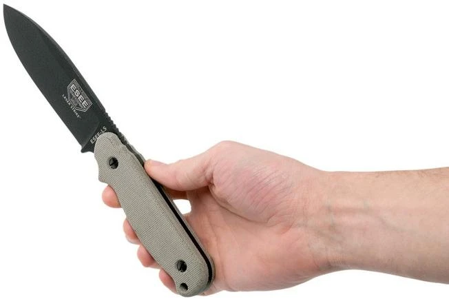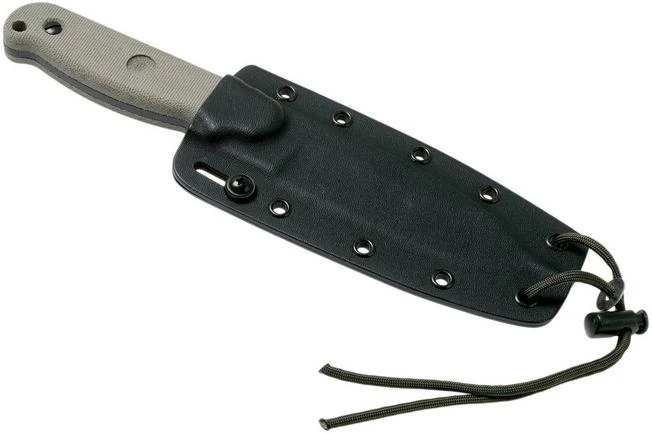 The ESEE Laser Strike is the big brother of Model 4. He is slightly larger which gives your hand a little more space. The blade is made of 1095 carbon steel. The extremely durable powder coating on the blade helps protect against the larger rust susceptibility known to carbon steel. The great performance of the steel guarantee a life long pleasure. The full tang blade features a micarta handle. This handle feels somewhat rough, which is good for grip and comfort.