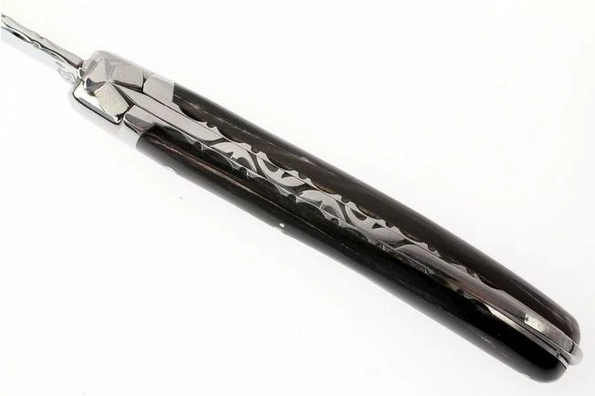 Classic French robust handcrafted Laguiole pocket knife. The ‘Le Pocket’ series is larger in size than the ‘XS’ knife and smaller and more compact in size than the ‘Nature’ knife. Its size is comparable to the sturdier and broader ‘Gentleman’ folding knife.