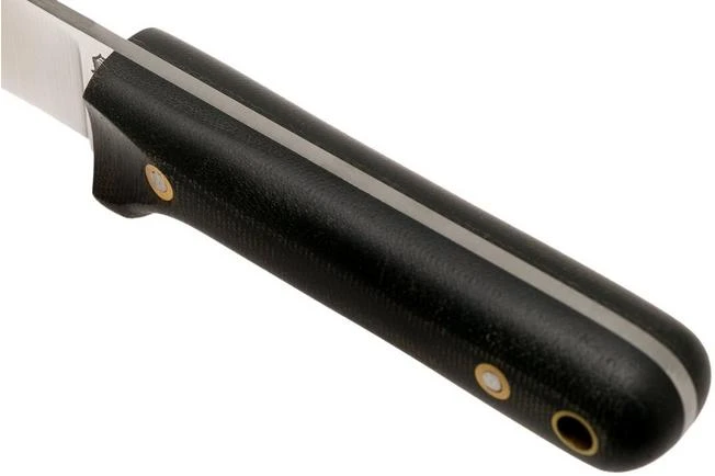 The LT Wright Next Gen is a cool and popular bushcraft knife, made in the United States. In terms of shapes it is a little like the archetypical bushcraft knife: simple but good. The handle looks simple, and it is. After all, simple works. You have enough grip over this ‘broomstick’ handle no matter how you hold it. Whether you are notching, feathersticking or cooking. The deep cut-outs at the front of the handle and side are perfect for your thumb. Great during a ‘chest-lever’ cutting movement, or when gutting game. As such you will always be 100% sure how you hold the knife. Even in the dark.
