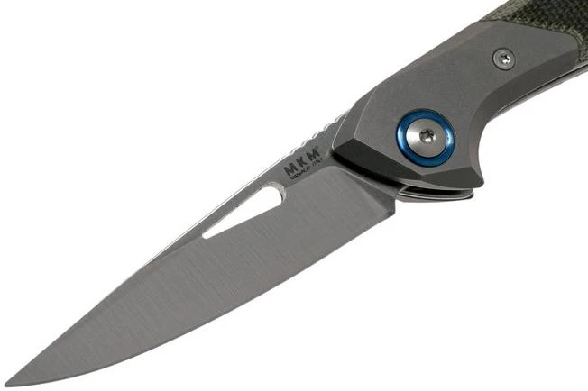MKM Cellina MY02-GCT Titanium Bolsters, Green Canvas Micarta Pocket Knife, Lucas Burnley Design