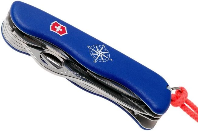 The Victorinox Skipper is a large pocket knife, designed for sailing. It contains different tools that are widely known, but also a tool that specifically comes in handy when sailing. It contains a very robust marlin spike to loosen knots.