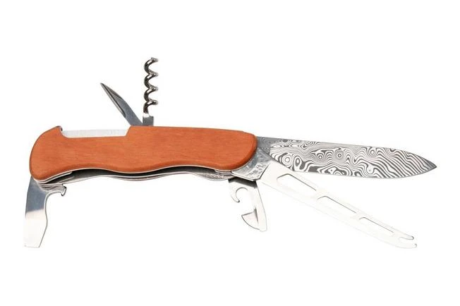 The Victorinox Special Picnicker Damask Pearwood Limited Edition 2022 is a special limited edition knife. The typical red scales have been replaced by beautiful pearwood scales. The blade is made from Damasteel Damascus steel in a ‘Baldur’ pattern. The knife comes in a luxurious gift box. A picnic has never been so chic with this stylish pocket knife!